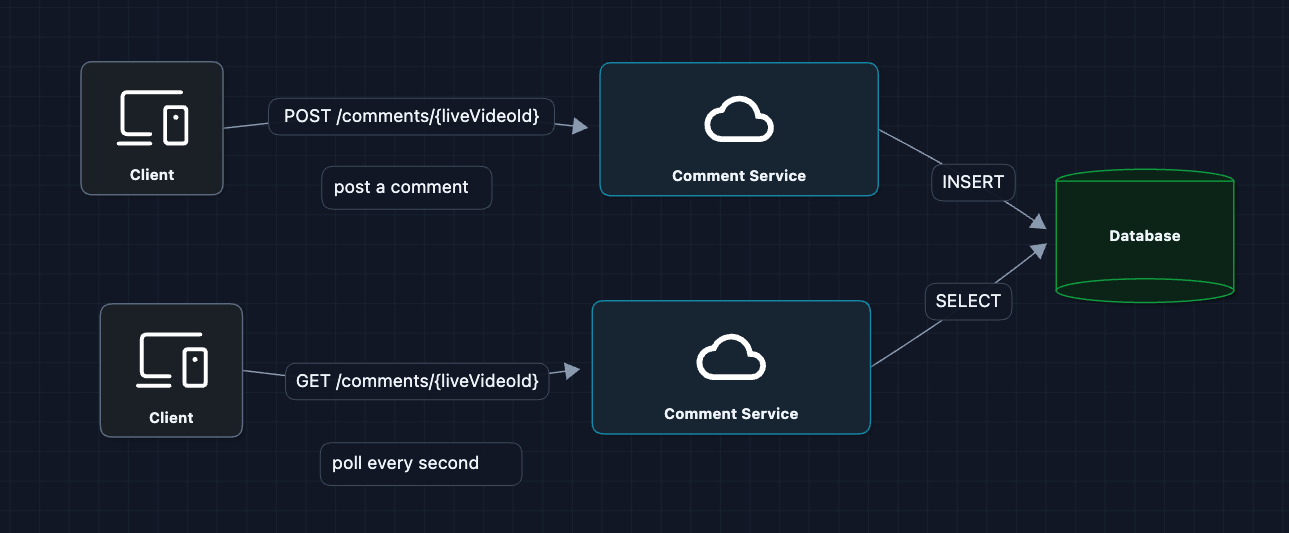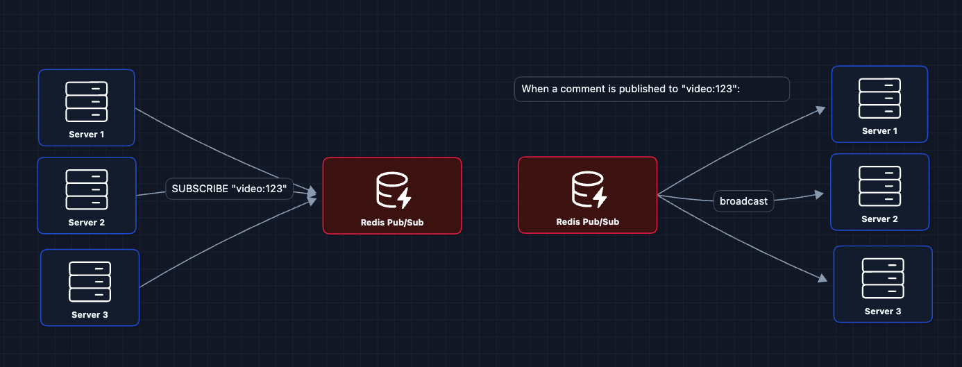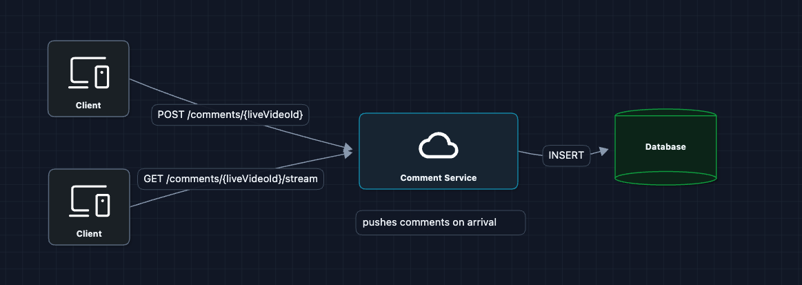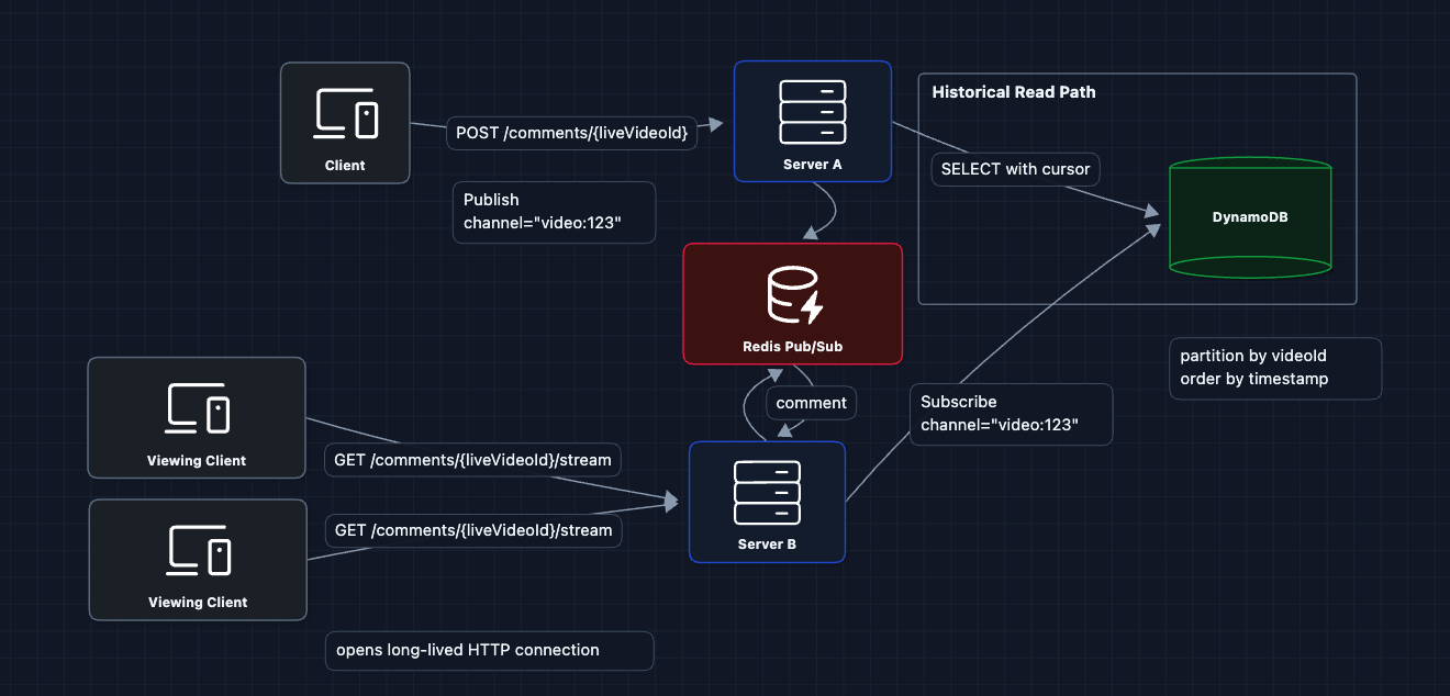 - Real-time Path: How new comments broadcast to all viewers.