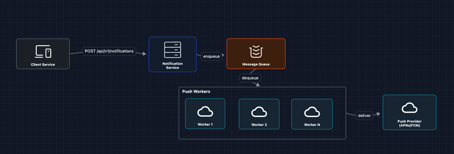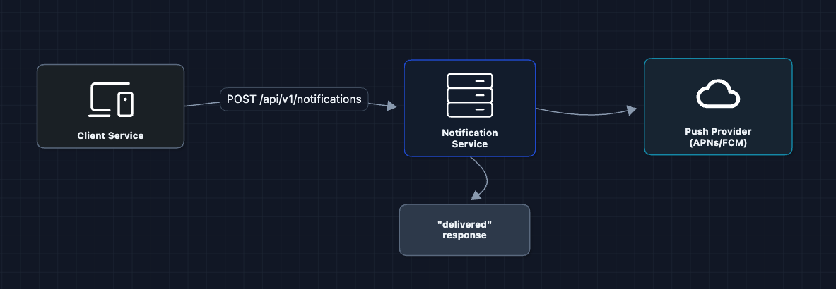 Let's start with the simplest design: a service that receives a request and directly calls a push notification provider.