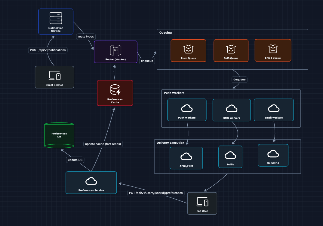- Multi-Channel Routing: How we send to the right channel based on user preferences.