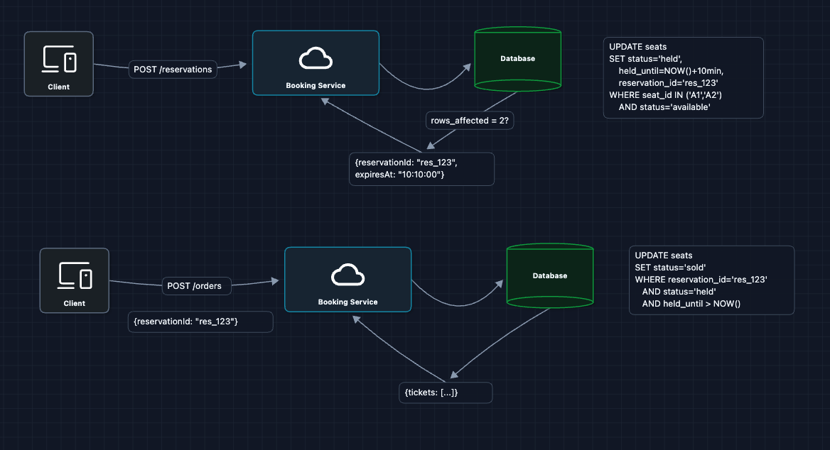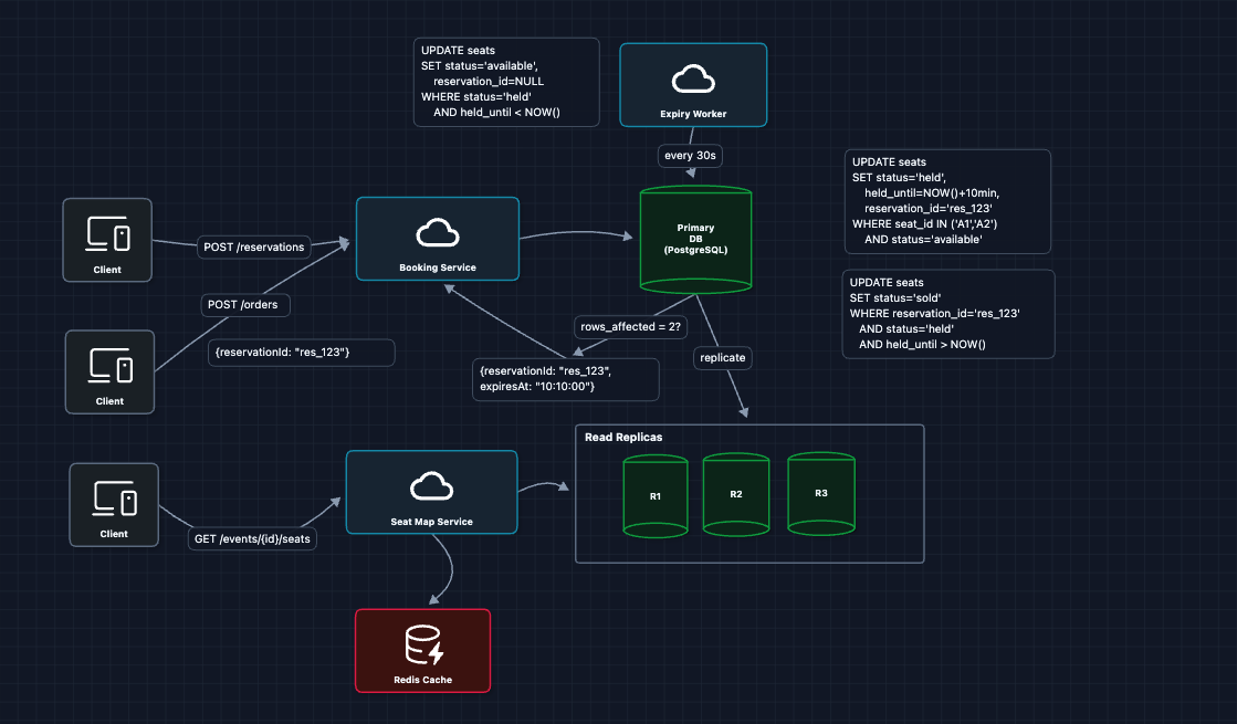 In this article, we will focus on Assigned Seating (specific seat_ids), which is harder. For General Admission, we would simply atomically decrement a capacity counter.