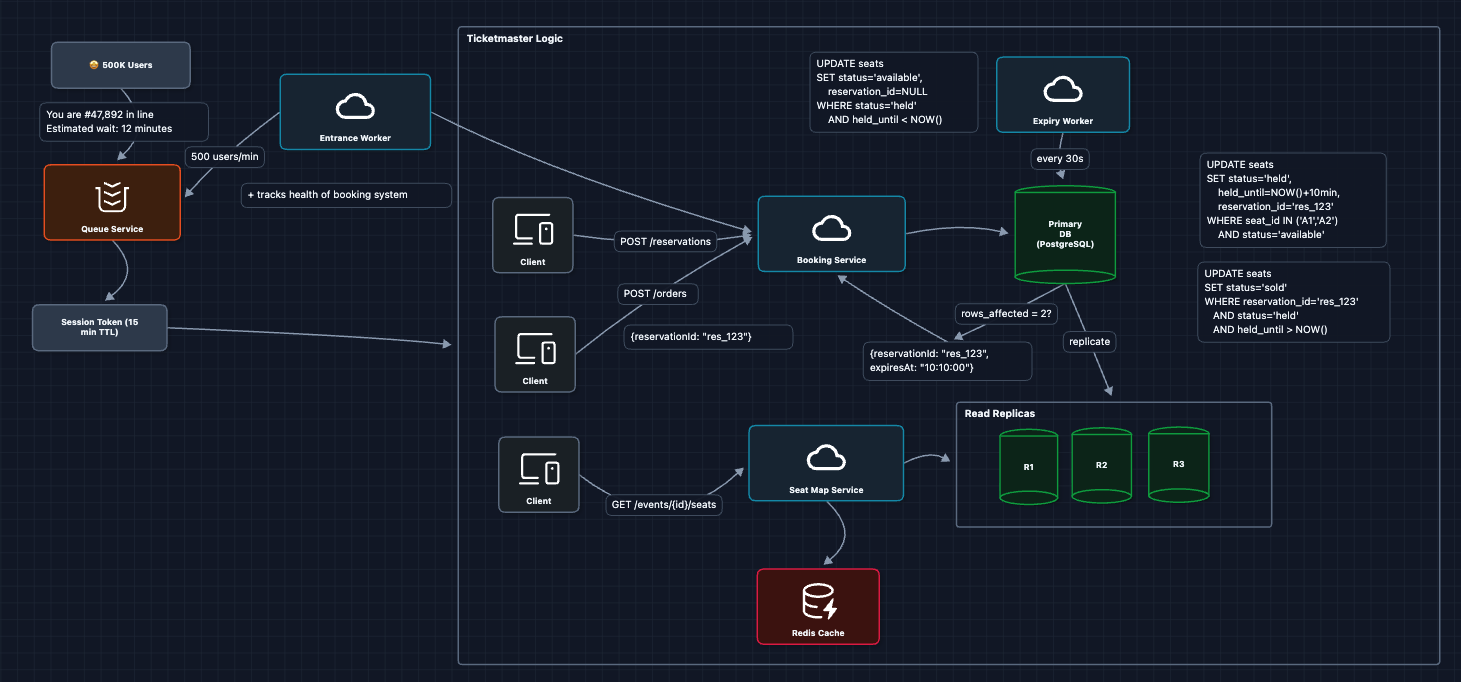 🎟️ Ticketmaster is the world's largest ticket marketplace, processing billions of dollars in ticket sales annually. You have millions of users competing for thousands of tickets.